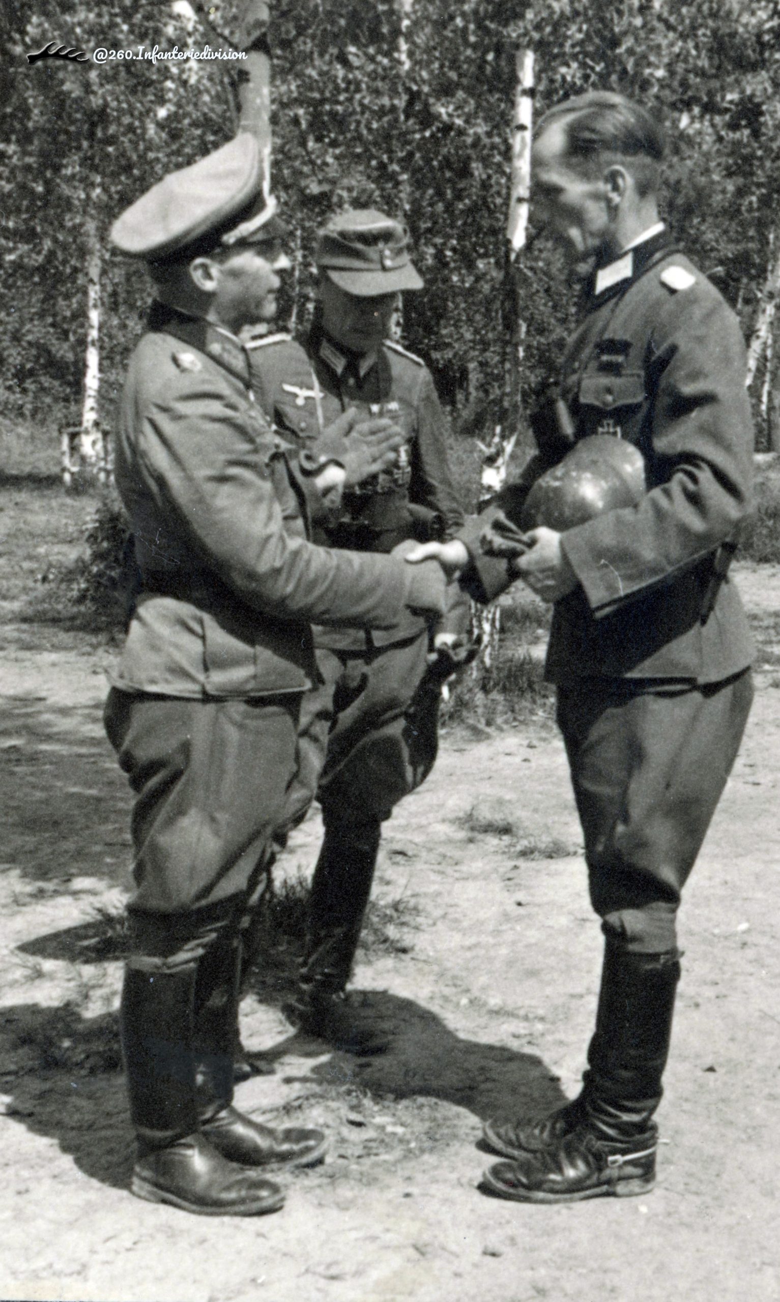 Livré à lui-même, le major Nädele, commandant du IIe bataillon du régiment de grenadiers 460, réussit, grâce à son engagement personnel exemplaire, à motiver ses troupes épuisées et à reconquérir, au cours d’un combat difficile en forêt, la hauteur et un village perdu, infligeant de lourdes pertes à l’ennemi.